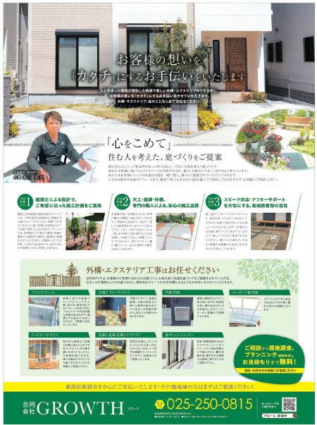 新潟県の新潟市、新発田市を中心に北陸エリアの外構・エクステリア工事を行う“合同会社GROWTH(グロース)”。